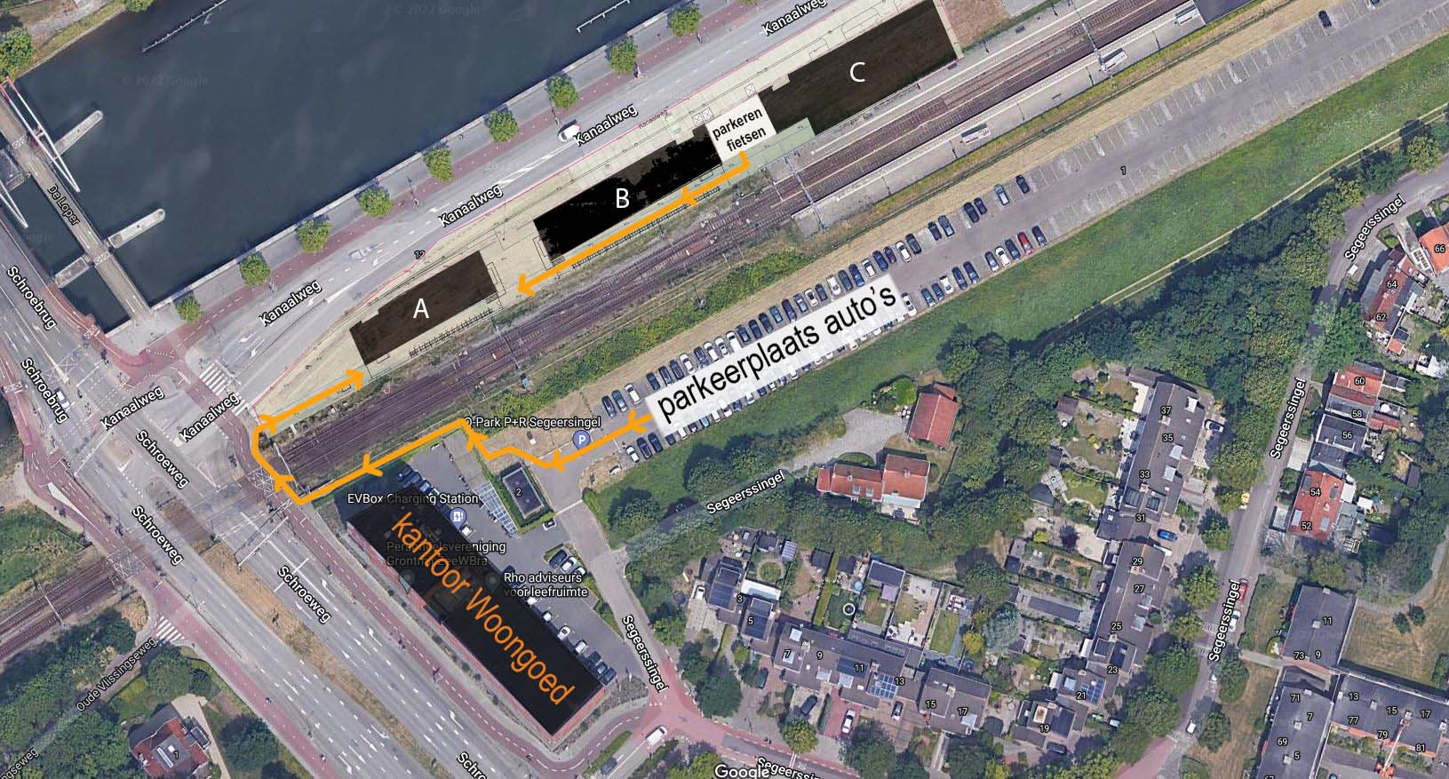 Op de fiets? Deze kunt u stallen tussen blok B en C zoals staat aangegeven op het kaartje.