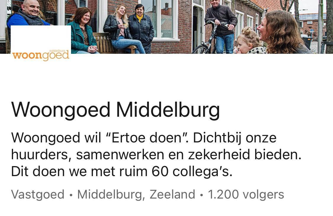 Woongoed Middelburg werkt samen met andere Zeeuwse topwerkgevers aan het versterken van de Zeeuwse arbeidsmarkt. Binnen de samenwerking Talent voor Zeeland worden leerzame, dynamische, praktijkgerichte en vooral interessante traineeships aangeboden waarbij onderlinge kennis en expertise wordt gebundeld. Ben jij een starter op de arbeidsmarkt en wil je jouw carrière in Zeeland een kickstart geven? Kijk dan voor meer informatie op www.talent-voor-zeeland.nl.