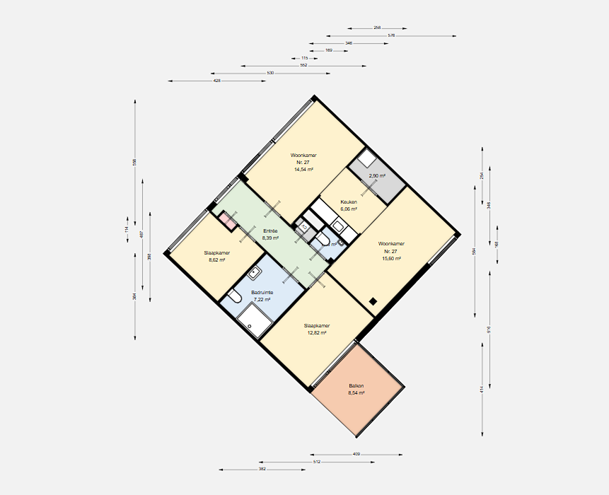 Elk appartement heeft: