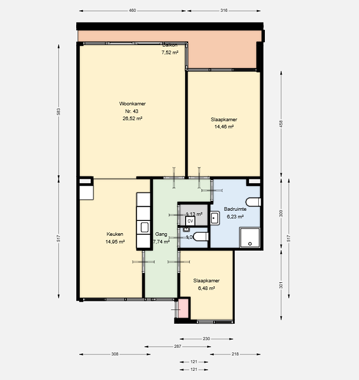Let op: dit is een voorbeeldplattegrond, indeling kan per woning anders zijn.
