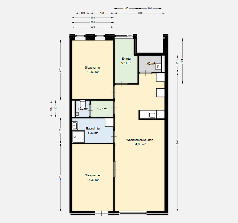 Elk appartement heeft: